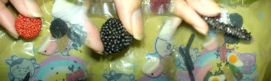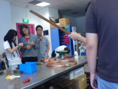 ♥ Monday, August 04, 2008=D030808, sunday. ![]() Raspberry flavour, blackberry flavour, worm thing. I actually liked this series of gummies a lot. Cus crispy outside, soft inside. Nice leh. =D Prefer minitoons' gummy mix rather than some other chain stores (like 7-11 or cheers or whatever). Having chain stores is important, cus it apparently means that you can buy anywhere. Minitoons' gummies are inexpensive, there's a wide selection and seems 'fresh' (those at 7-11 or cheers, looked as if they have been there for donkey-knows-how-long, i thought). ![]() ![]() Yay finished sewing my burger (but the rest haven't yet). I bought two more. ![]() Now i got three boxes. ![]() Sushi got stock le! And bday cake only left one for sale. Cus miss ho wanted me to make the bday cake for her bday, hahs which is like the next day, but then confirm not enough time de, sure belated. I haven't even start on it yet. - 040808, monday. Student lounge. ![]() Saras, chuchin. ![]() Don't ask me why we were so fascinated by the circular mirrors. ![]() We can see downstairs, but the people below cannot see us, muahahahs. Cus the windows appear black on the outside. ![]() Tiptoed to place head into the mirror. ![]() Xinxing. 心星。 ![]() Two handless, naked statues outside. Rainy day. Metalsmithing class. ![]() A very pretty (photo didn't do justice) wooden sword, rofl. Why got wood piece in a jewellery-making room sia. We say it is used to fight vampires one (LOLS watched too much tv liao). A day to experiment with 1mm and 3mm copper wires (as shown in above photo, on the table). ![]() The roll mill machine. We say it looks like for crushing sugarcane that one and make ban-mian LOLS. This manual machine can be used to flatten wires, shape into semi-circle, reduce diameter (slim down the wires), and do pattern. ![]() Lecturer said that we're learning to become sailors. -_____- (The wheel really look like for ships, when turning.) ![]() Sample/reference set. ![]() Products of my today's practice. From top: 3mm semi-circle with pattern annealed, 3mm annealed twisted slightly-flattened, two 1mm twisted flattened. ![]() "And they were all yellow..." We rented umbrellas from campus 3, cus it was raining. Got no affection for bringing umbrellas everywhere i go, cus bulky. - Extracted from tcc below. there was this funny guy who keep turning back to talk to us from another class who we seriously not interested to make friends w him. then suddenly he turned back for the n time and reach his hand out and say 'hi im joseph' LOL !!!!!! kim went 'uh..okay' and of couse nvr shake his bloody hands lah ! HAHAHA. my god, malu sia. and he act cute like wtf go bang wall la, make a fool out of yourself.ROFLLL... I don't really care how somebody looks (although he looks normal), BUT BUT BUT, i care about how a person portrays ego. I absolutely dislike man who is over-confidence, yet skin not thick enough for little bit of ma-lu (not even consider humiliation lo). I do not think it's cute for a guy to pout to some strangers (zz 又不是跟你很熟). He might think he is cute to pout and do victory sign, but we think NOT. Bwahahhahas. - Yawns. Zzz haven't attempted to draw the 9 pieces yet. -_- Nights, love. 11:59 pm